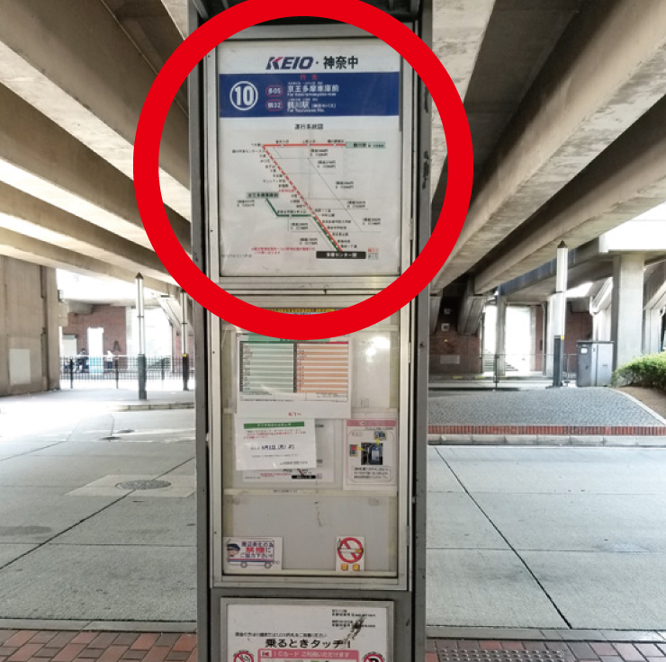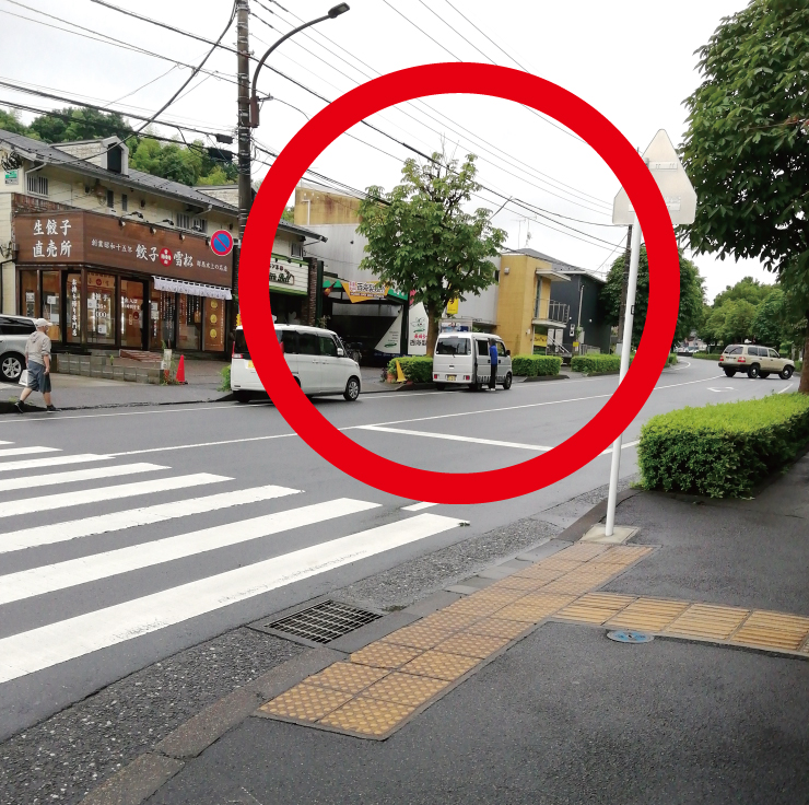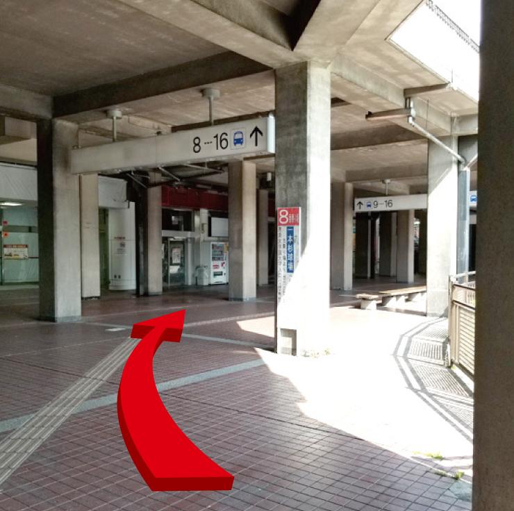 | ③ | 左方向道なりに進み、10番バス停で