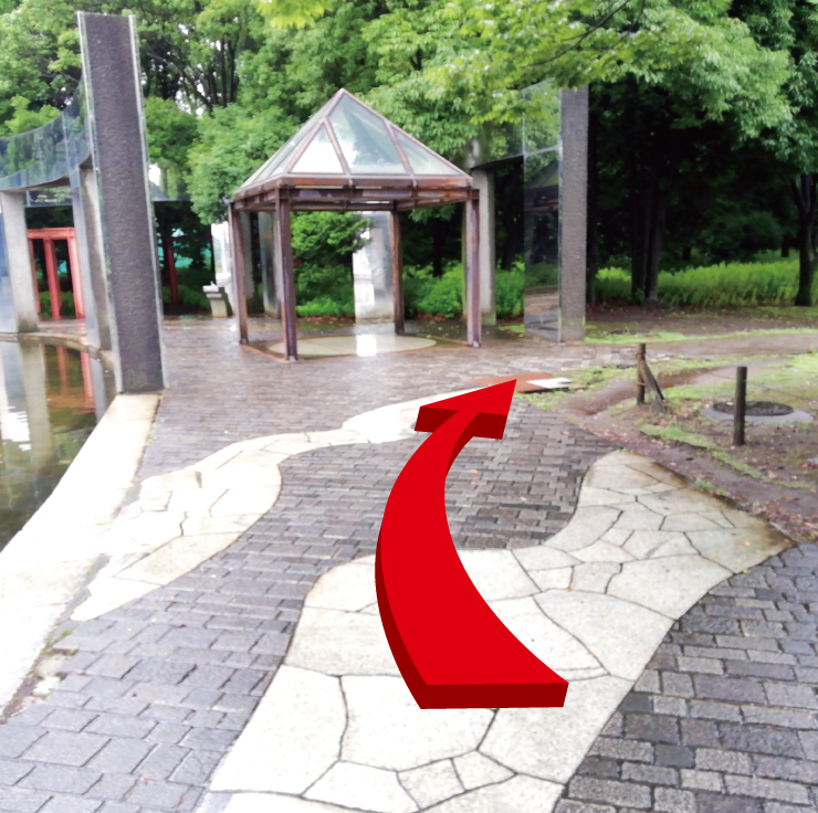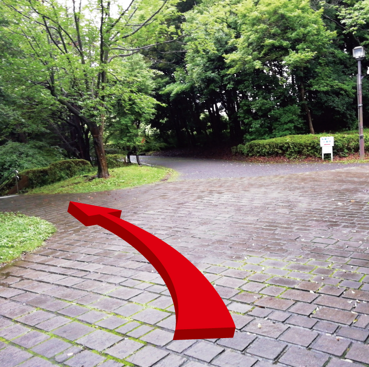 | ③ | 左に人工池、石畳に沿って右へ