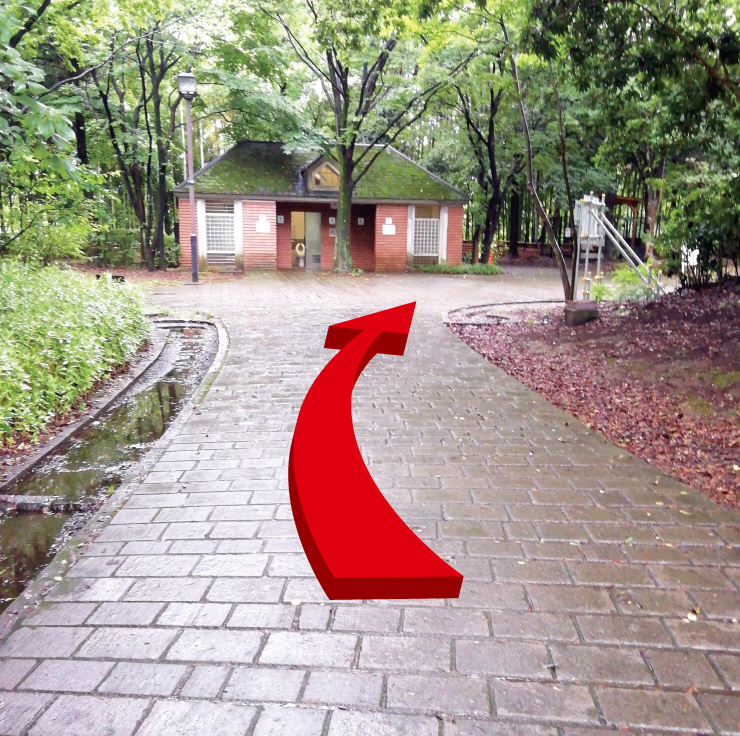 | ④ | 右手に多摩中央公園、真っ直ぐ行くと公衆トイレ